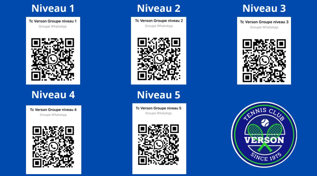 Si tu souhaite trouver des partenaires pour jouer au tennis n’hésites pas à scanner le QR code qui va te permettre de rejoindre le groupe du niveau correspondant à ton classement